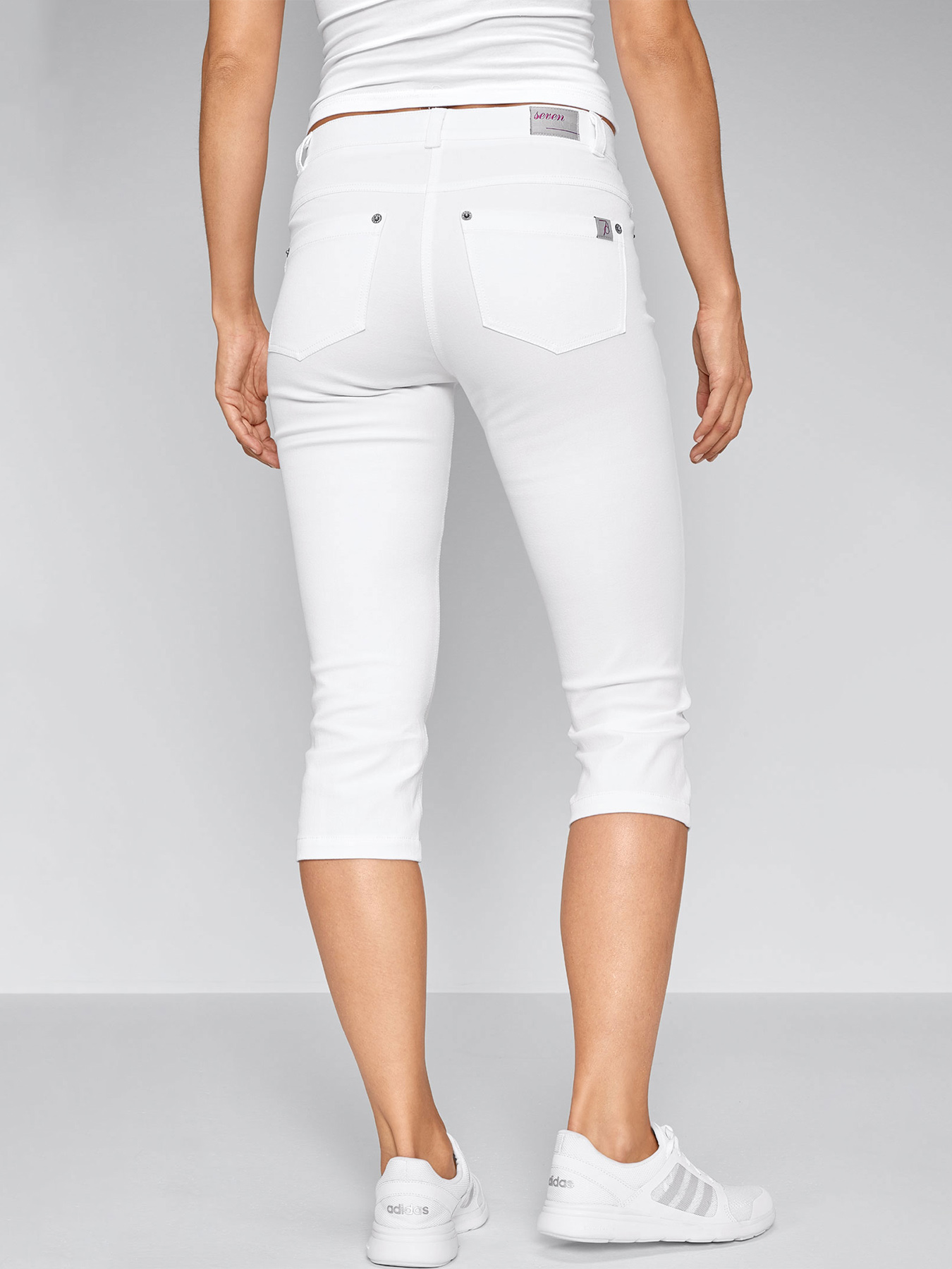 Diese 3/4-Hose sitzt wie eine zweite Haut und macht jede Bewegung mit, das leichte Material bietet dauerhaften Stretch-Komfort. 5-Pocket, normale Leibhöhe, slim fit = körpernah geschnitten, Schrittlänge ca. 46 cm. 72% Baumwolle/23% Polyester/5% Elasthan, angenehm leichte, elastische Komfort-Stretchqualität, 270 g/m2, 60°-Wäsche.