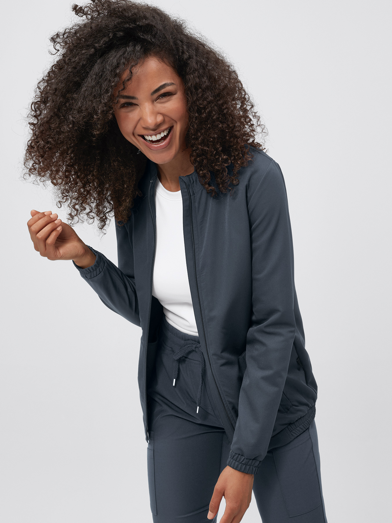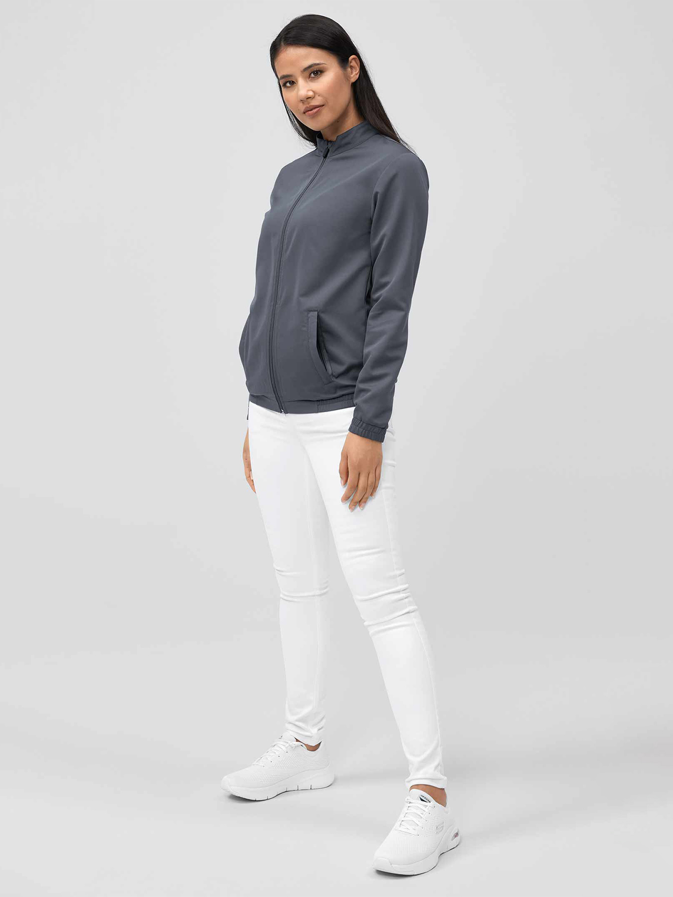Weiche und flexible Jacke aus feuchtigkeitsableitendem Material für ein leichtes und angenehmes Tragegefühl. Außen glänzend, innen mit wabenartiger Struktur für hohen Tragekomfort. Zipper, 2 seitliche Reißverschlusstaschen, Gummibund an den Säumen, Rückenlänge Gr. S ca. 63 cm. Leichte, elastische Qualität aus 84% Polyester/16% Elasthan, Micro-Gewebe, 150 g/m2, schnelltrocknend und atmungsaktiv, 60°-Wäsche.
