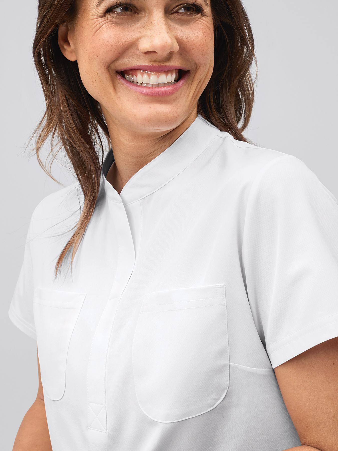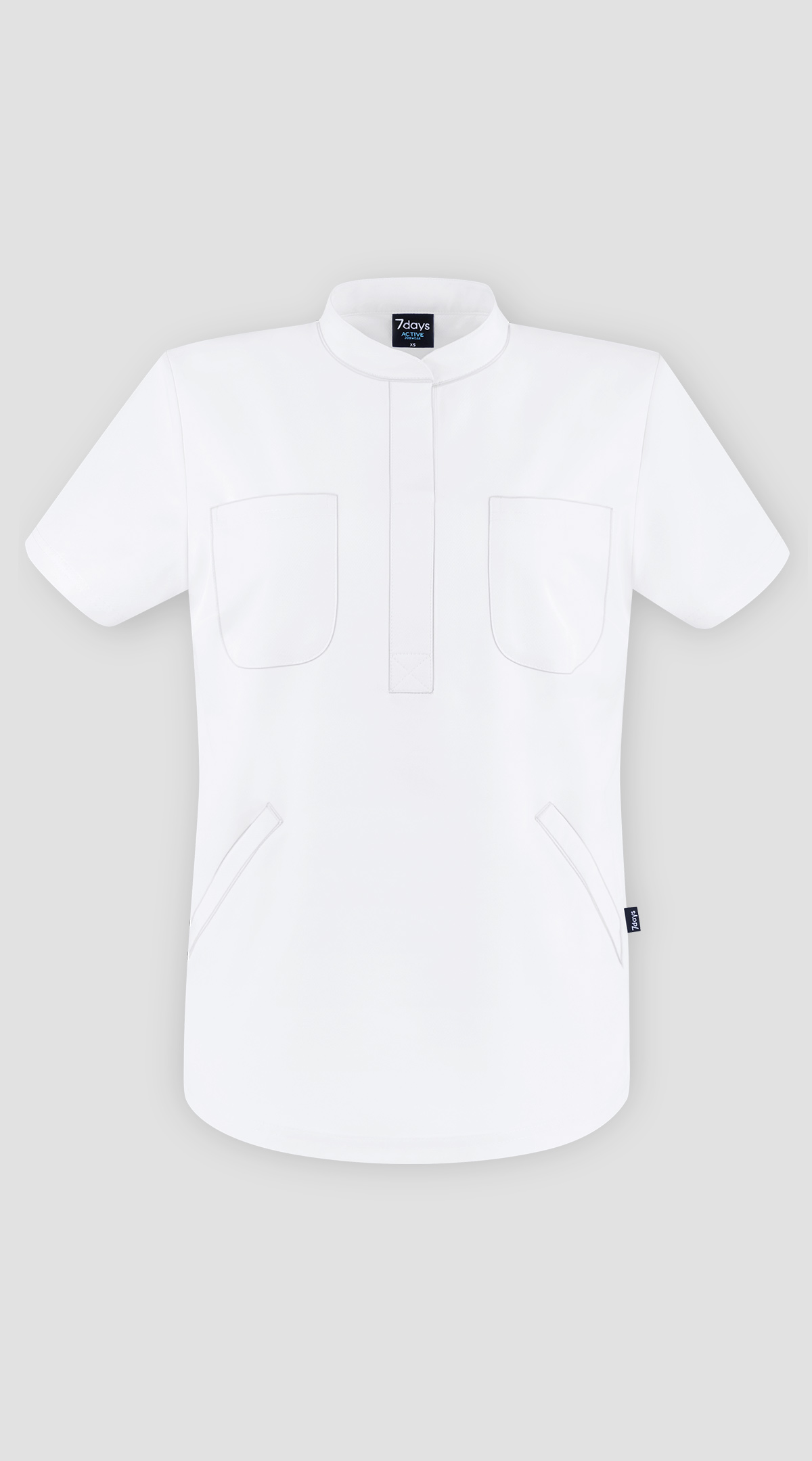 Weicher und flexibler Blusenkasack aus feuchtigkeitsableitendem Material für ein leichtes und angenehmes Tragegefühl. Außen glänzend, innen mit wabenartiger Struktur für hohen Tragekomfort. Mit kleinem Stehkragen, kurzarm, 2 Paspeltaschen + 2 Brusttaschen, abgerundeter Saum. Rückenlänge Gr. S ca. 64 cm, 84% Polyester/16% Elasthan, 150 g/m², 60°-Wäsche. Die Lieferung erfolgt ohne weiteres, abgebildetes Zubehör.