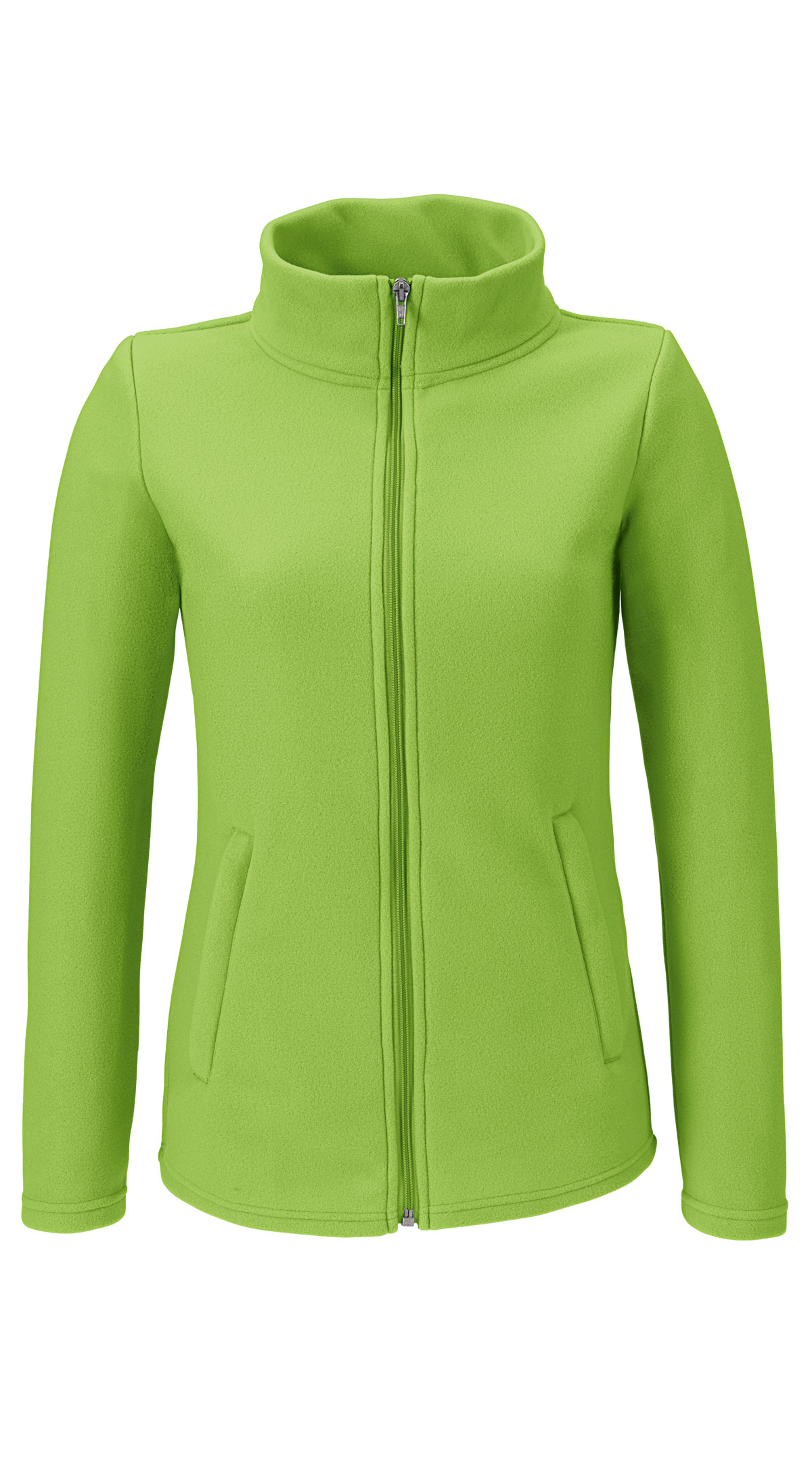 Stehkragen, Langarm, Reißverschluss, 2 integrierte Reißverschlusstaschen vorne, figurbetonend geschnitten, Länge bei Gr. S ca. 62 cm. Kuschelig-weiches Fleece-Material aus 100% Polyester, außer grau melange: 67% Polyester/33% Viskose, 40°-Wäsche.