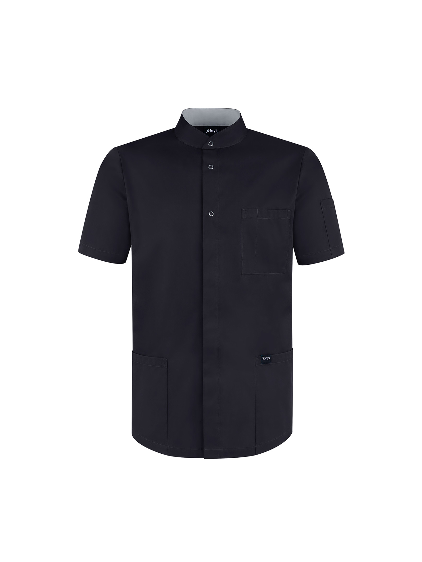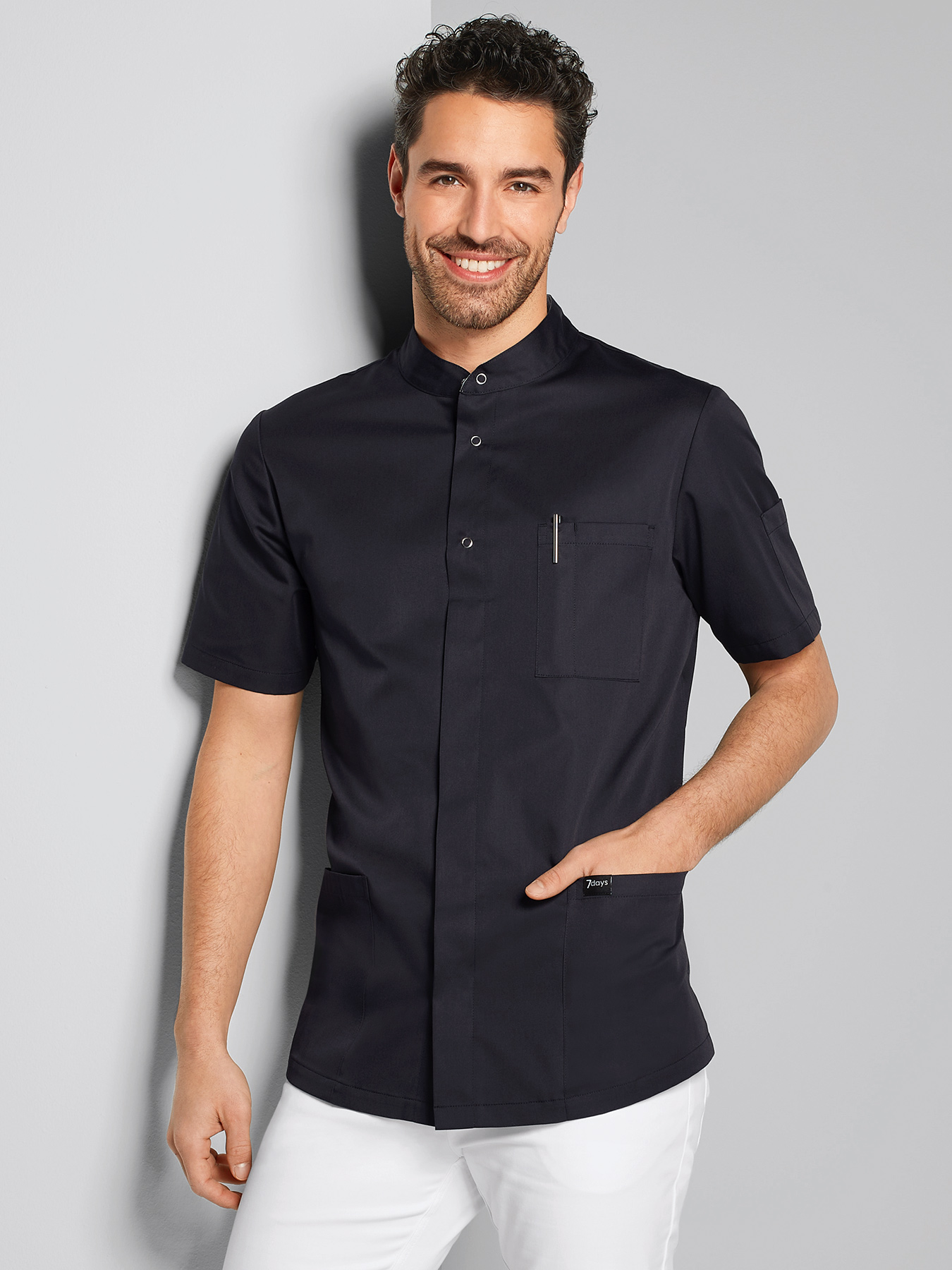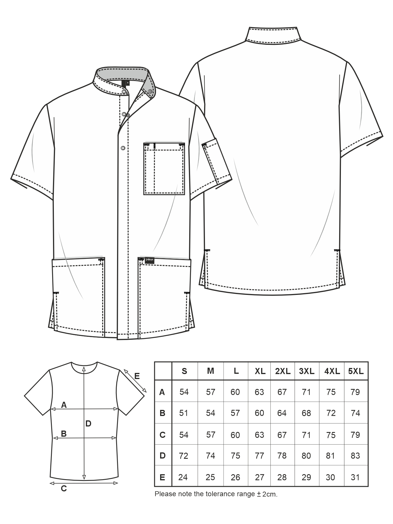 Sportlicher Herrenkasack mit teilverdeckter Druckknopfleiste. Regular fit, Stehkragen mit kontrastfarbener Innenseite, 1 Brusttasche mit abgetrennter Kulitasche, 2 große Einschubtaschen, 1 kleine Tasche am Ärmel. Bequeme Seitenschlitze, Rückenlänge Gr. M ca. 74 cm. Farben = 50% Baumwolle/50% Polyester, 150 g/m2, weiß in 2 Qualitäten, 95°-Wäsche, trocknergeeignet. Die Lieferung erfolgt ohne Kugelschreiber.