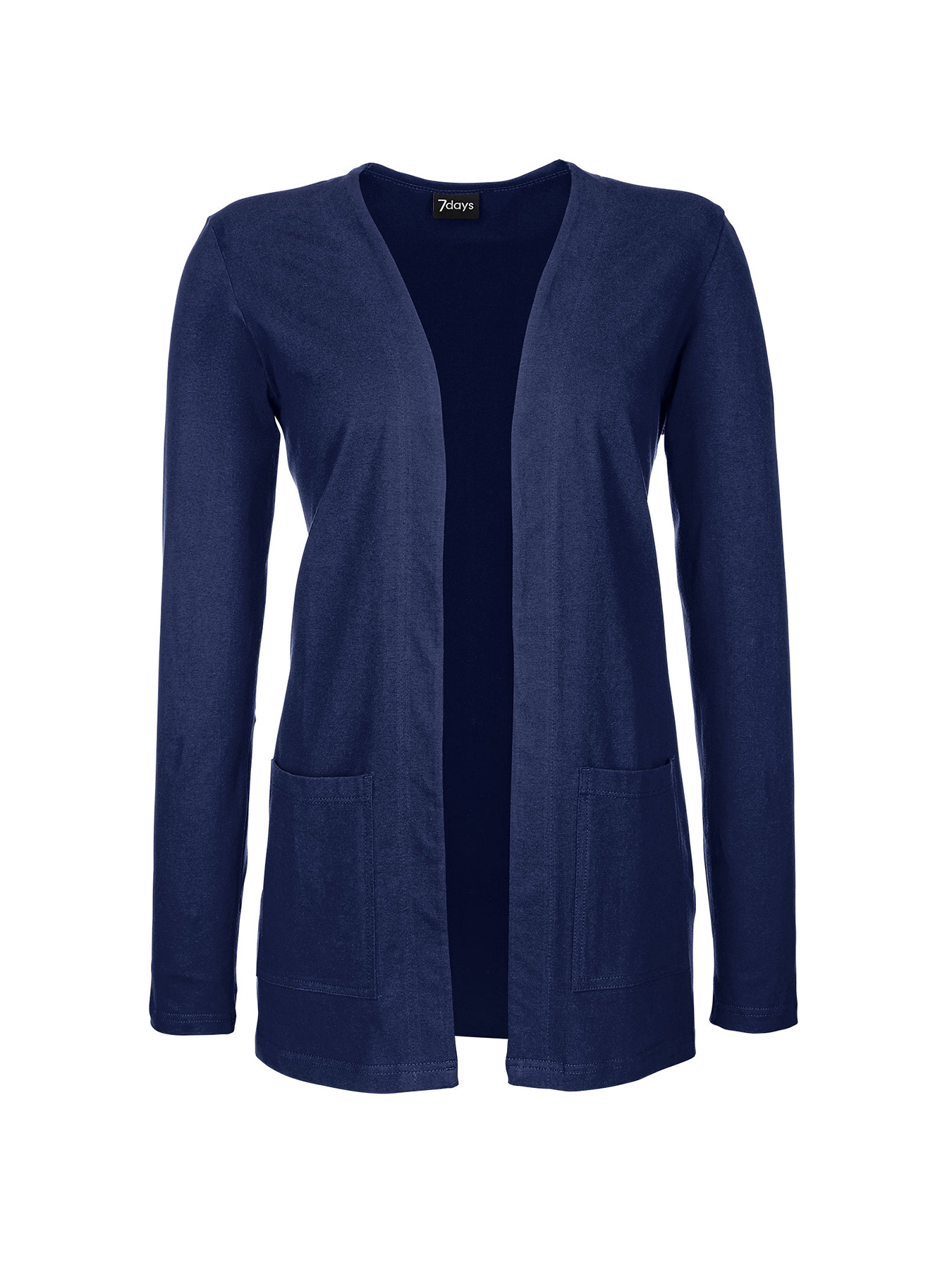 Moderne, leichte Shirtjacke, ideal zum schnellen Überziehen. Langarm, 2 aufgesetzte Taschen. Extra lang geschnitten, Länge Gr. S ca. 72 cm. Formstabile Qualität aus 94% Baumwolle/6% Elasthan, 200 g/m², Single Jersey, 60°-Wäsche.
