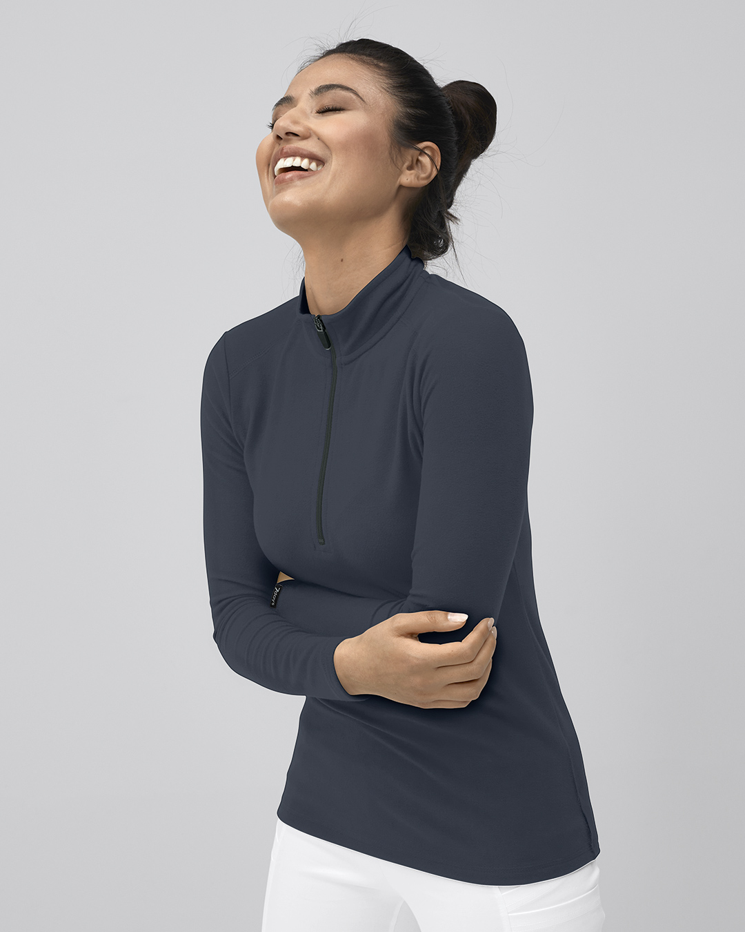 Microfleece-Langarm-Damenshirt mit kurzem Reißverschluss und Stehkragen. Regular fit, Rückenlänge Gr. S ca. 68 cm, leicht abgerundeter Saum. Leichtes, weiches, elastisches Material aus 92% Polyester/8% Elasthan, 220 g/m2, 40°-Wäsche. Die Lieferung erfolgt ohne abgebildetes Zubehör.