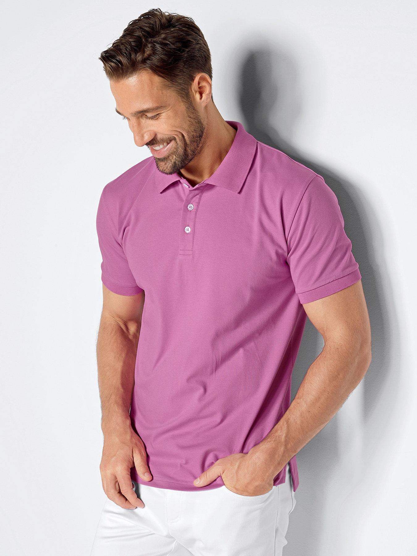 Für Sie und Ihn: Klassischer Poloshirtkragen aus Strick, 3-Loch-Knopfleiste, ¼-Armlänge mit Strickbündchen, lässig geschnitten, bequeme Seitenschlitze, hinten etwas länger geschnitten, Rückenlänge bei Gr. M ca. 73 cm. Atmungsaktive, elastische Qualität aus 95% Baumwolle/5% Elasthan, Piqué-Stretchware, 180 g/m2, 40°-Wäsche.